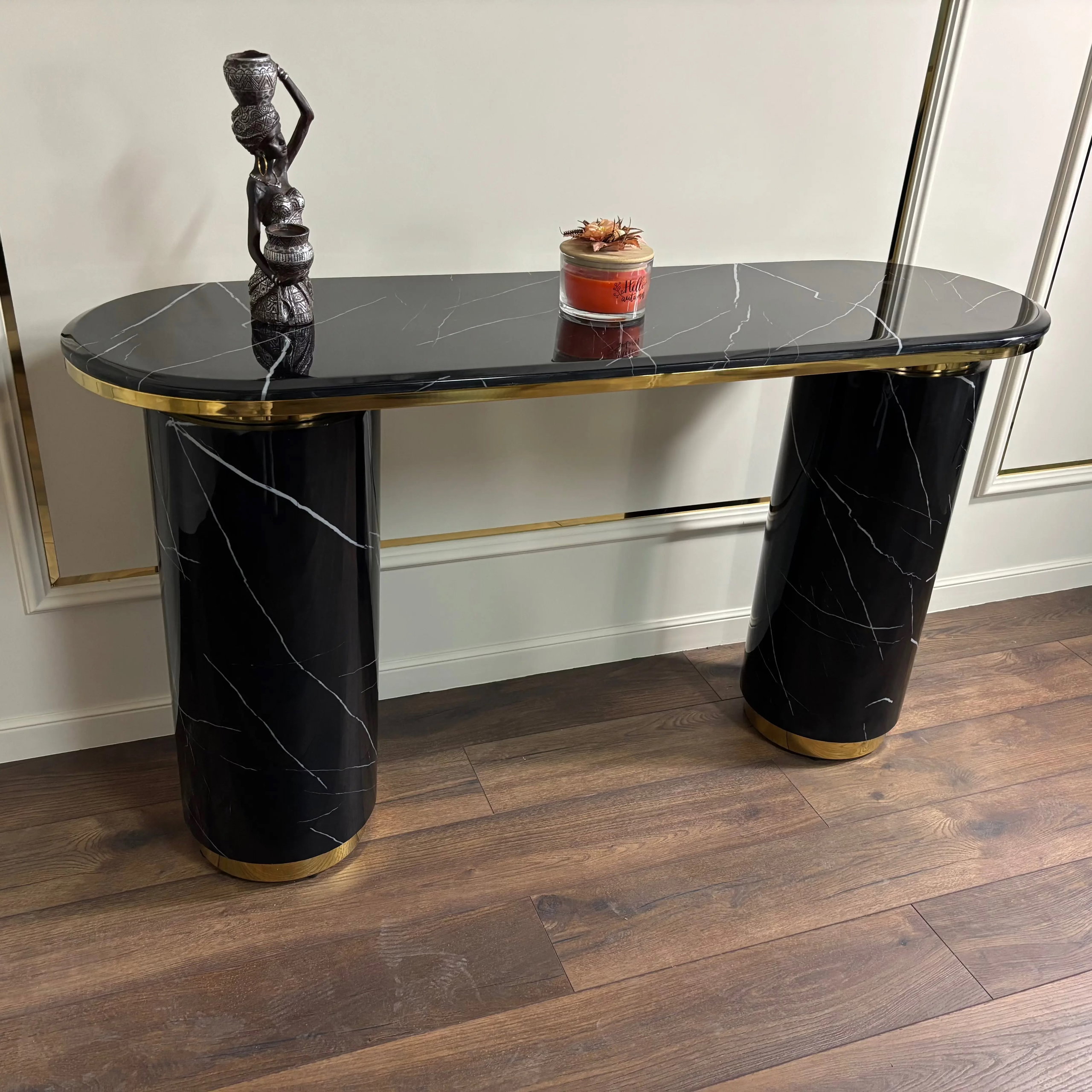 Consola Marble Glow adaugă profunzime și eleganță oricărui interior. Textura marmurată, nuanțele aurii și forma sculpturală o transformă într-o piesă care captează atenția și completează perfect un decor modern.