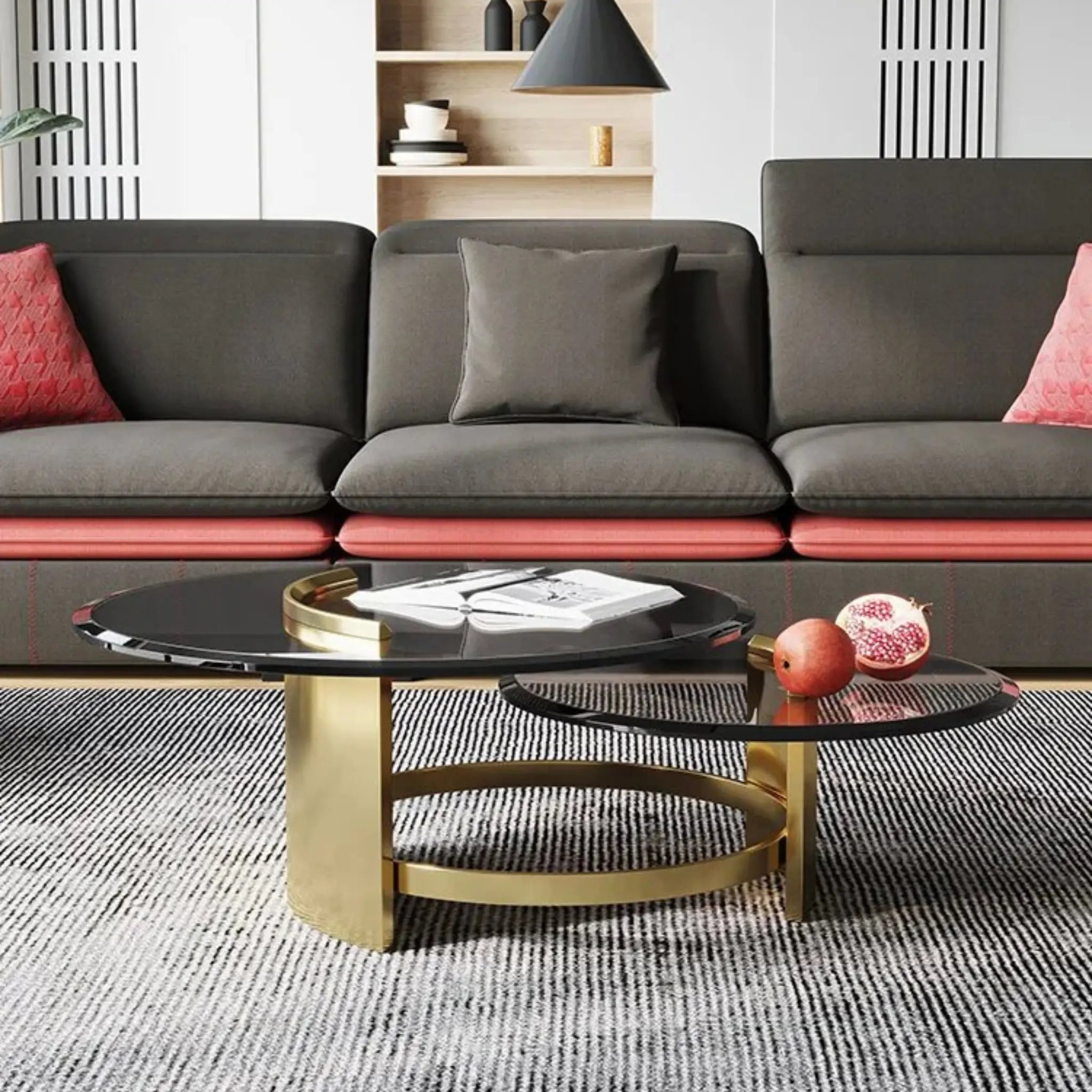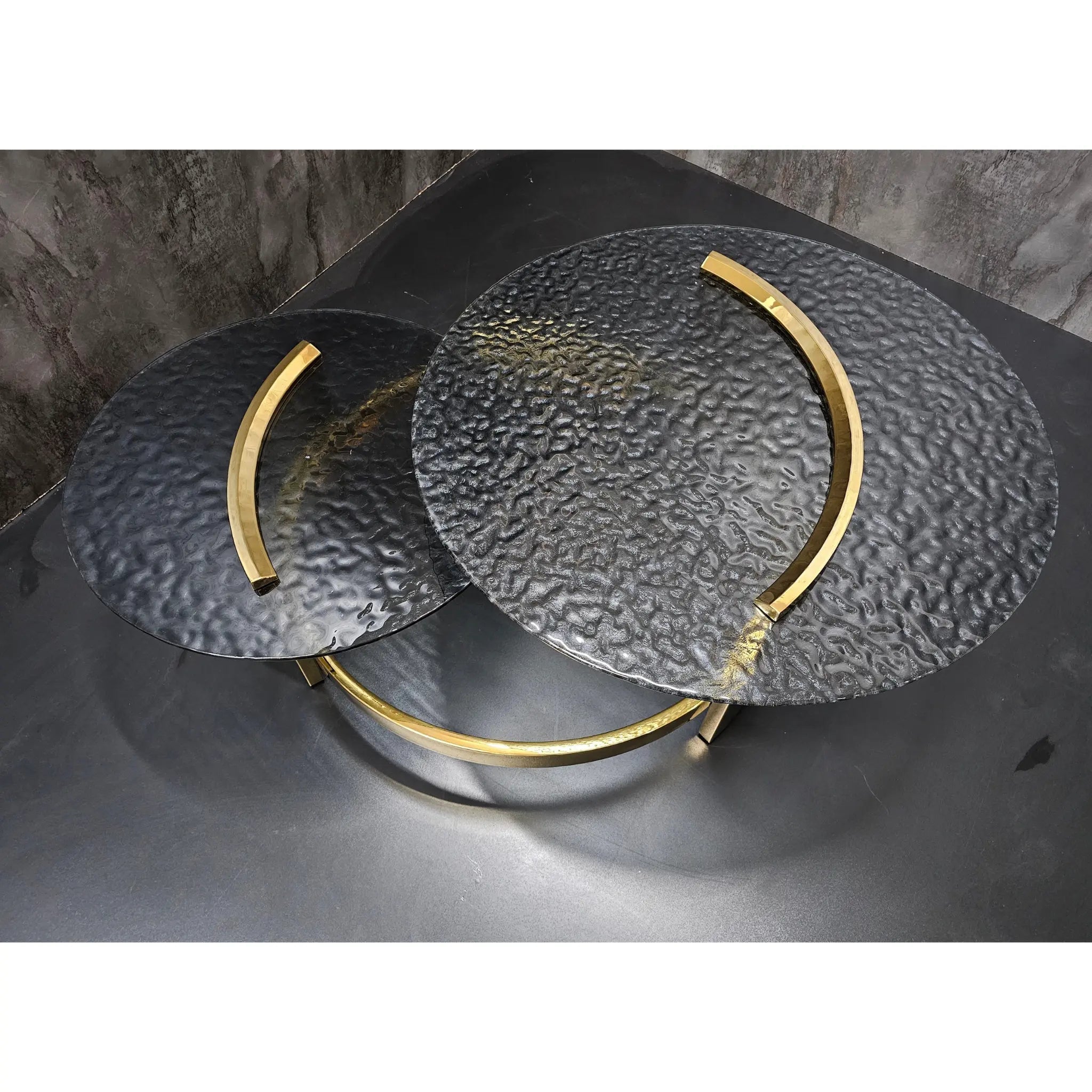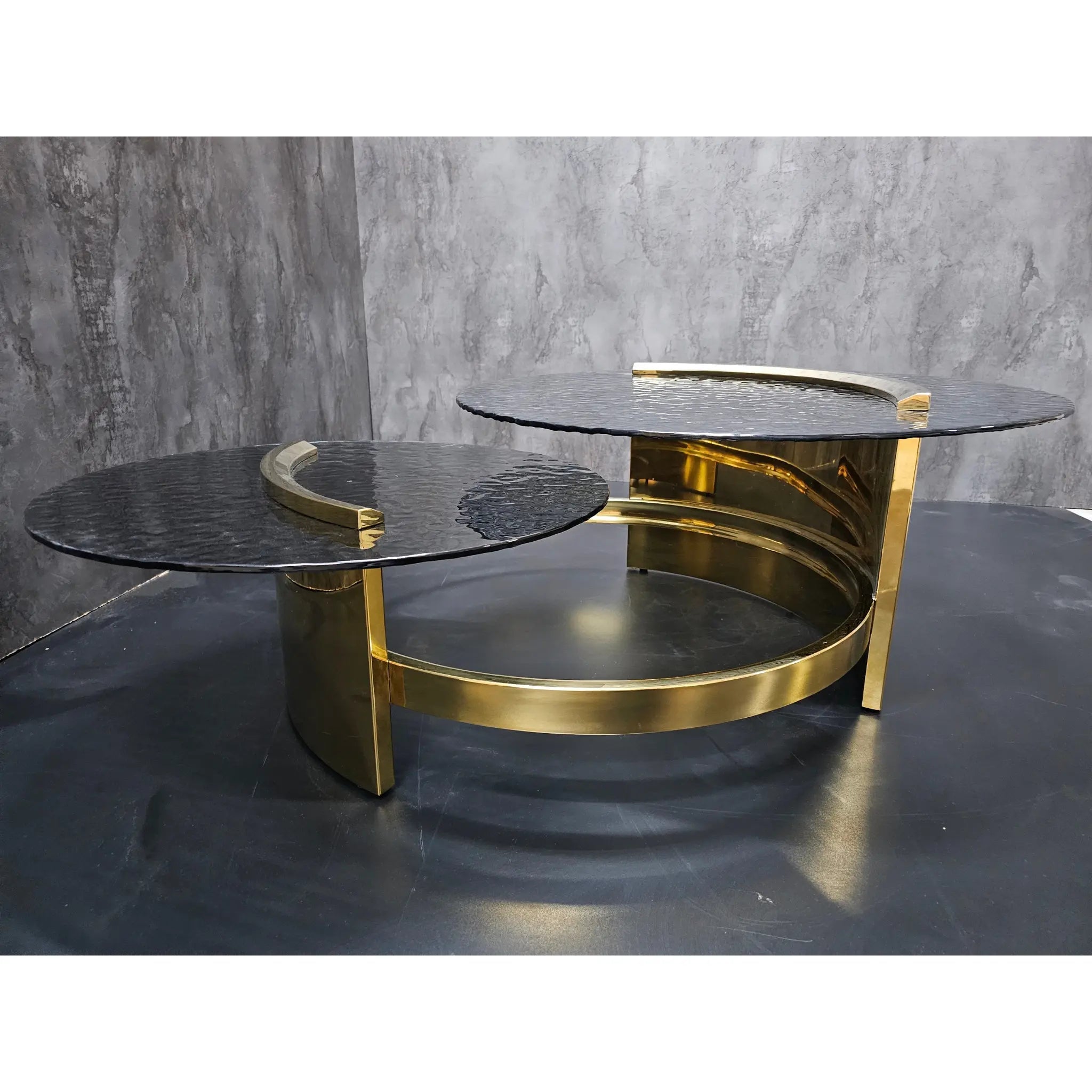 Măsuța Infinity oferă un efect vizual spectaculos datorită contrastului dintre textura sticlei și strălucirea inoxului auriu. Este o piesă de accent ideală pentru orice living luxos, transformând spațiul într-un decor modern și sofisticat.