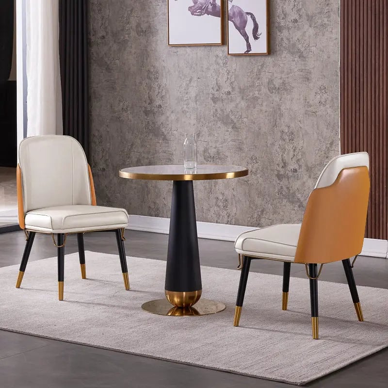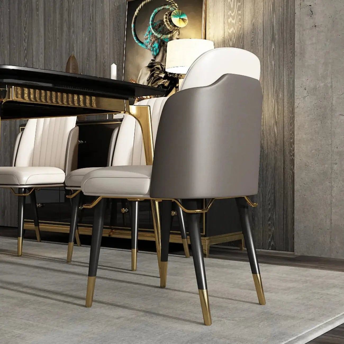 Scaunul Ellis combină confortul premium cu un design modern, accentuat de tapiseria în două tonuri și detalii metalice aurii. Silueta curbată și materialele de calitate îl fac potrivit pentru orice zonă de dining elegantă.