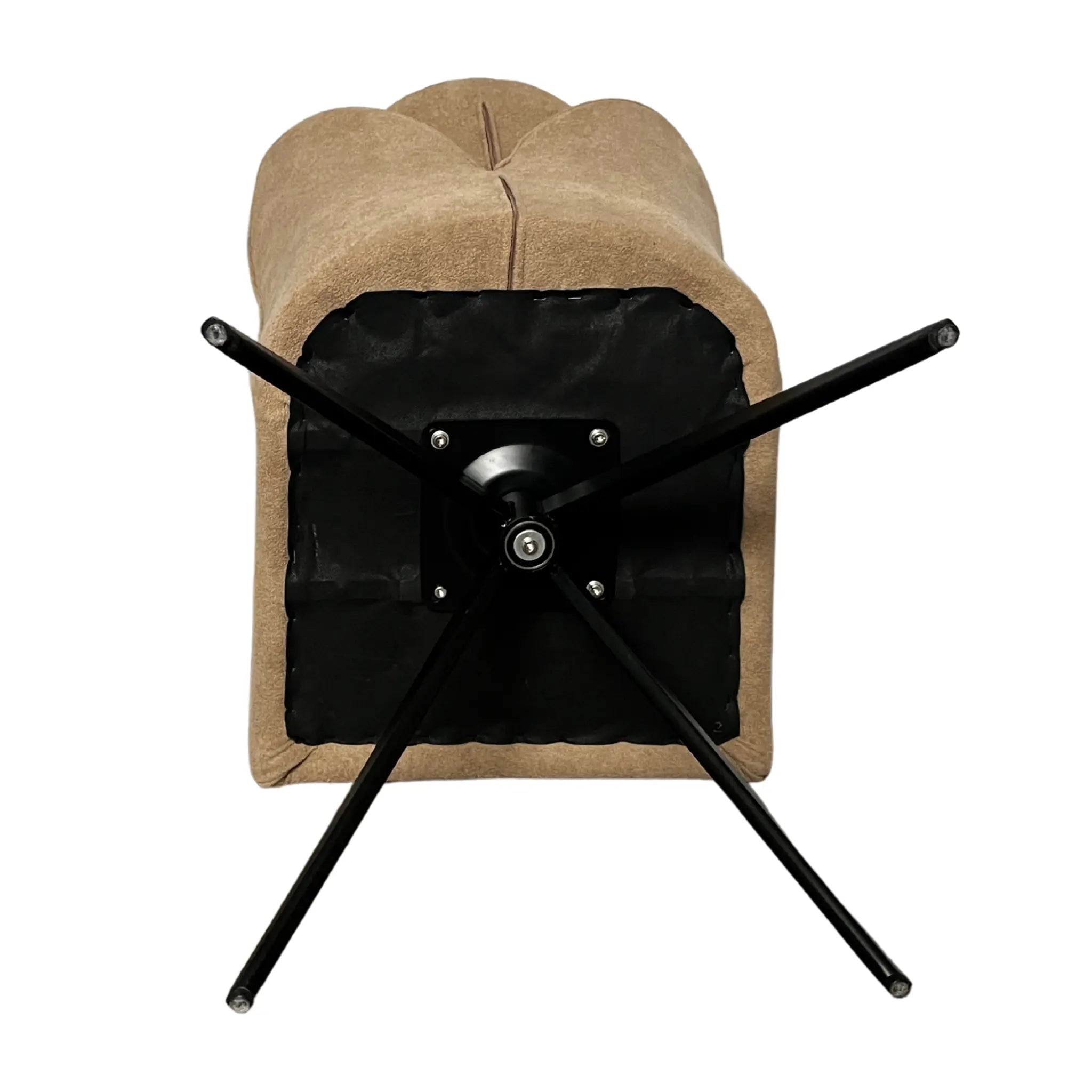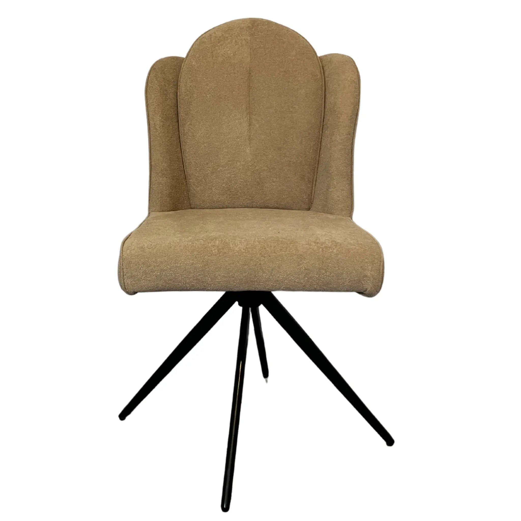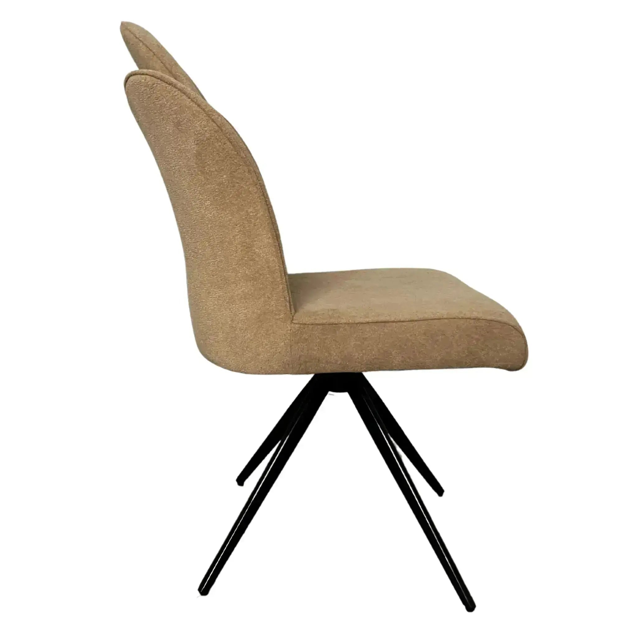 Aruna este un scaun rotativ cu siluetă elegantă și un look sofisticat, ideal pentru spații moderne care îmbină stilul contemporan cu funcționalitatea. Tapițeria textilă într-o nuanță caldă de bej camel aduce confort vizual, iar baza metalică neagră cu funcție rotativă 360° oferă stabilitate, mobilitate și adaptabilitate pentru orice tip de încăpere.